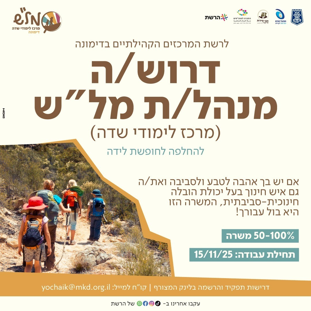 • ניסיון ניהולי - עדיפות למנהל/ת שבא/ה מהתחום החינוכי – סביבתי